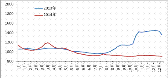 從海運(yùn)市場(chǎng)來(lái)看,受大宗商品物流需求低迷影響,加之海運(yùn)運(yùn)能過(guò)剩,2014年中國(guó)沿海干散貨運(yùn)價(jià)指數(shù)累計(jì)平均為989.9點(diǎn),較上年同期下降11.8%。