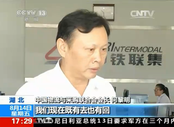 8月14日,中國物流與采購聯(lián)合會會長何黎明應(yīng)邀赴武漢見證全國第800列中歐班列(武漢-德國杜伊斯堡)X8017次開行,并接受央視采訪。