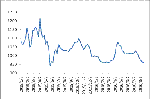 本周(2016年8月22日~8月26日),由中國物流與采購聯合會和林安物流集團聯合調查的中國公路物流運價指數962.1點,比上周回落0.1%,連續六周環比回落,比上年同期下降6.4%。