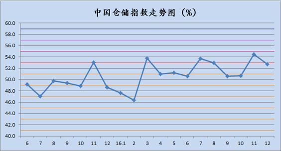 2016年,實現了“十三五”時期良好開局,國內經濟企穩態勢逐漸鞏固,市場需求穩步回升,供需矛盾有所緩解、商品價格快速回升,庫存周轉加快。受此影響,倉儲業經濟活動呈現逐步回升走勢,下半年增速明顯加快。從中國倉儲指數來看,全年該指數平均水平保持在51.3%的較高水平,高于2015年1.2個百分點。從全年走勢看,下半年達到52.5%,較上半年提升2.4個百分點。