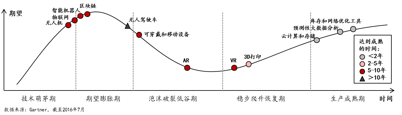 未來5-10年,云計算和存儲、預測性大數(shù)據(jù)分析等絕大多數(shù)新技術(shù)將進入生產(chǎn)成熟期,預計會廣泛應用于倉儲、運輸、配送等各個物流環(huán)節(jié),為推動中國智慧物流的全面實現(xiàn)和迭代提升奠定基礎(chǔ)。