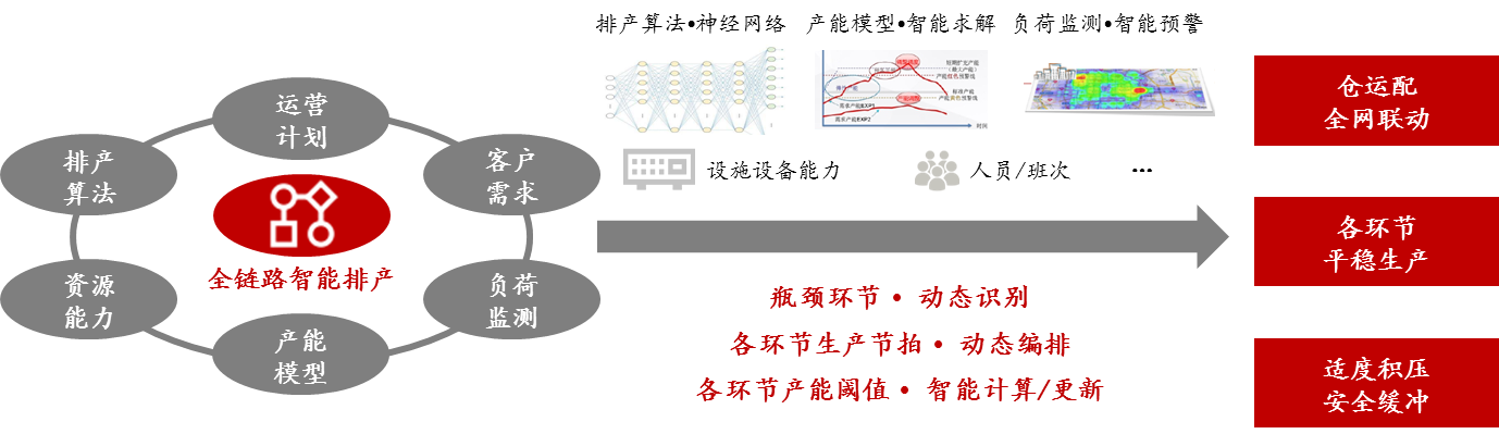 主要體現(xiàn)在全鏈路智能排產(chǎn)和運營規(guī)則智能設(shè)置兩個方面。