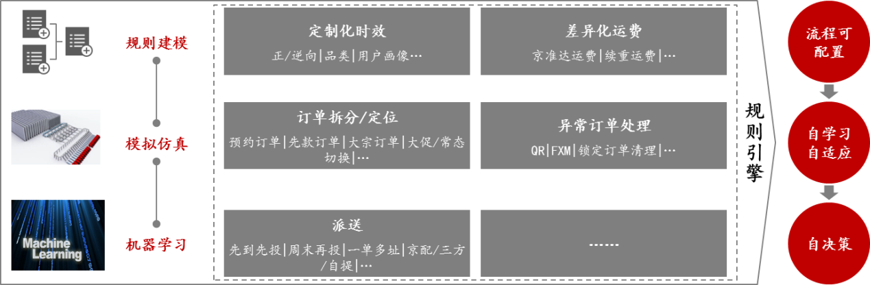以電商B2C物流運營規(guī)則為例:網(wǎng)絡(luò)購物具有高峰(例如618、雙11大促)、常態(tài)兩種場景,由于訂單規(guī)模的巨大差距,對應的訂單生產(chǎn)方式、交付時效、運費、異常訂單處理等的規(guī)則差異很大,未來的規(guī)則引擎,將能自動感知時間、商品品類等條件,自主為每類訂單設(shè)置最優(yōu)的運營規(guī)則。