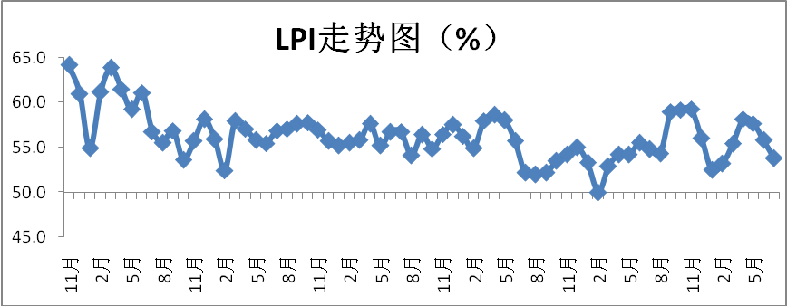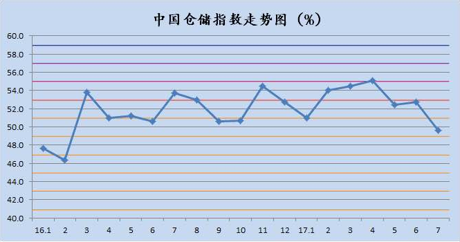 中國物流與采購聯合會發布的2017年7月份中國物流業景氣指數為53.8%較上月回落2個百分點;中國倉儲指數為49.6%,較上月回落3.1個百分點;中國公路物流運價指數為105.1點,比上月回落1.8%;中國電商物流運行指數同比指數為119.8點,比上月回落3.4點。