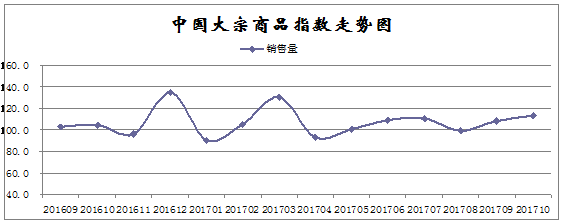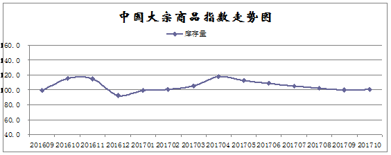 由中國(guó)物流與采購(gòu)聯(lián)合會(huì)調(diào)查、發(fā)布的2017年10月份中國(guó)大宗商品指數(shù)為112.4%,升幅較9月份擴(kuò)大6.5個(gè)百分點(diǎn),連續(xù)兩個(gè)月顯現(xiàn)升幅擴(kuò)大的格局,指數(shù)水平創(chuàng)下近七個(gè)月以來的高點(diǎn)。主要分項(xiàng)指數(shù)全部上升,供應(yīng)指數(shù)和銷售指數(shù)升幅明顯,且明顯高于去年同期水平。總的來看,供需增長(zhǎng)態(tài)勢(shì)相對(duì)均衡,企業(yè)經(jīng)營(yíng)活動(dòng)活躍,市場(chǎng)形勢(shì)繼續(xù)改善。不過,隨著庫(kù)存持續(xù)積聚,當(dāng)前供應(yīng)壓力有所加大,后期如果需求不能持續(xù)消化不斷增長(zhǎng)的庫(kù)存,市場(chǎng)將面臨較大的調(diào)整風(fēng)險(xiǎn)。