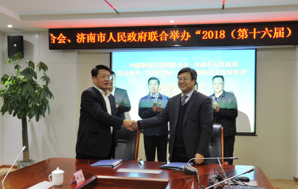 中物聯與濟南市人民政府就聯合舉辦“2018(第十六屆)中國物流企業家年會”簽訂合作協議