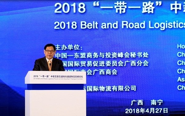 4月27日,2018“一帶一路”中新互聯互通南向通道物流高峰論壇(以下簡稱“高峰論壇”)在南寧舉辦。中國物流與采購聯合會副會長兼秘書長崔忠付應邀出席本次論壇并發表開幕致辭。他指出,論壇各參與方相聚綠城,共同探討中新互聯互通南向通道(以下簡稱“南向通道”)的建設問題,加快推進南向通道建設,是全面落實習近平總書記對廣西賦予“三大定位”的戰略舉措,是貫徹落實中新兩國領導人戰略共識的具體行動,同時也是推動國際陸海貿易新通道建設的積極探索。