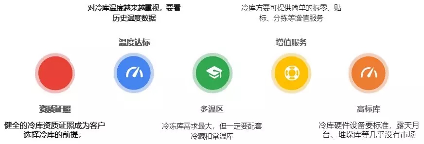 主要原因是:(1)高標庫少,很多冷庫硬件差無法滿足高端客戶需求;(2)資質證照不全,客戶在選擇時有后顧之憂;(3)地理位置偏,交通不便,輻射半徑小,造成物流成本高。