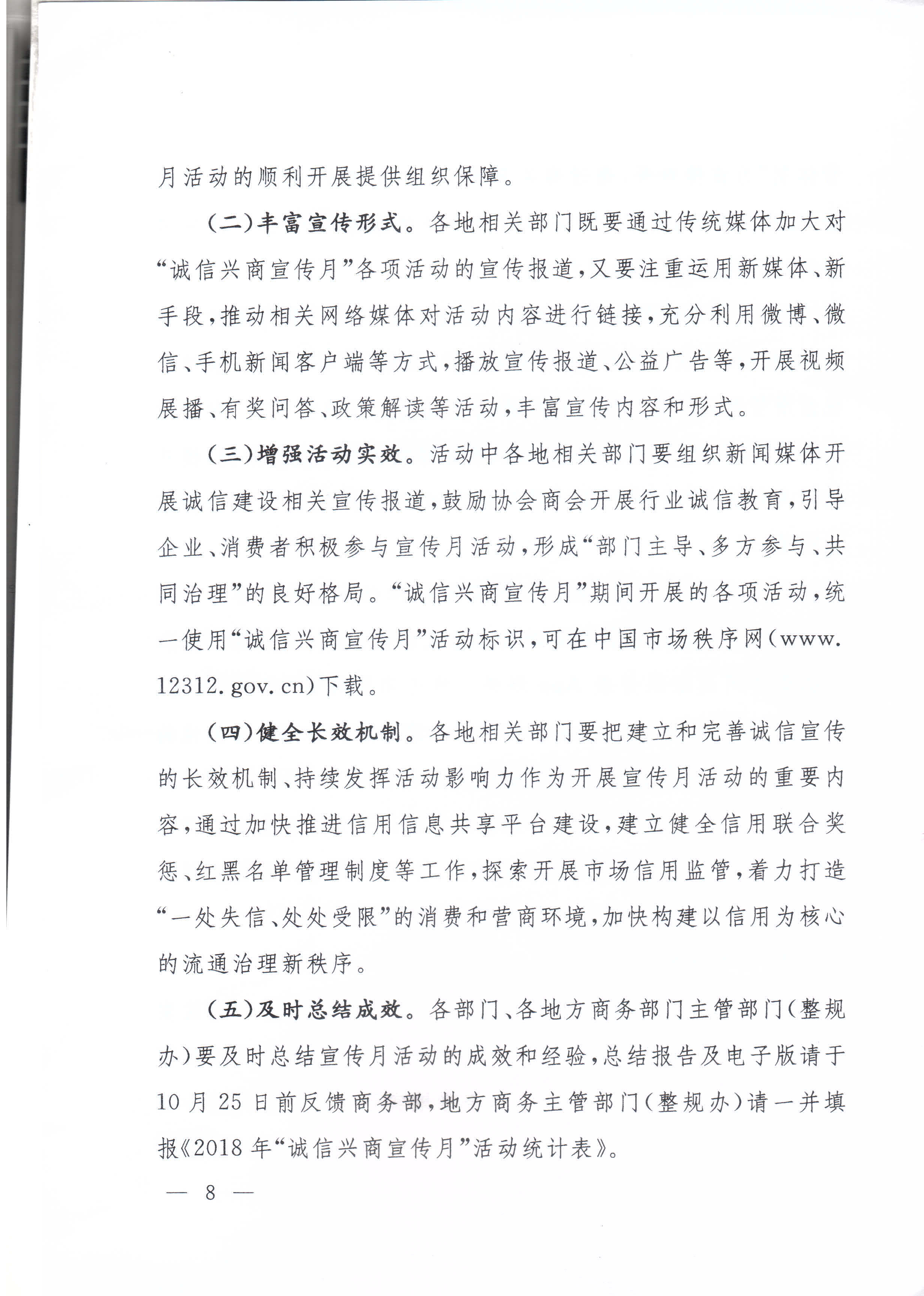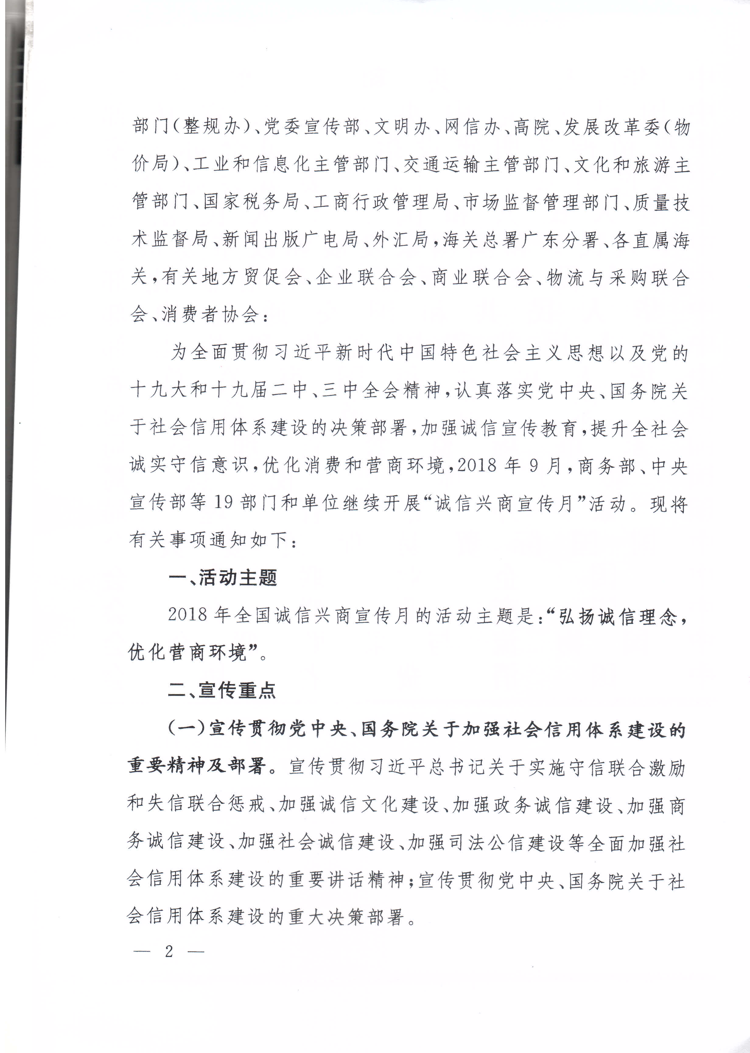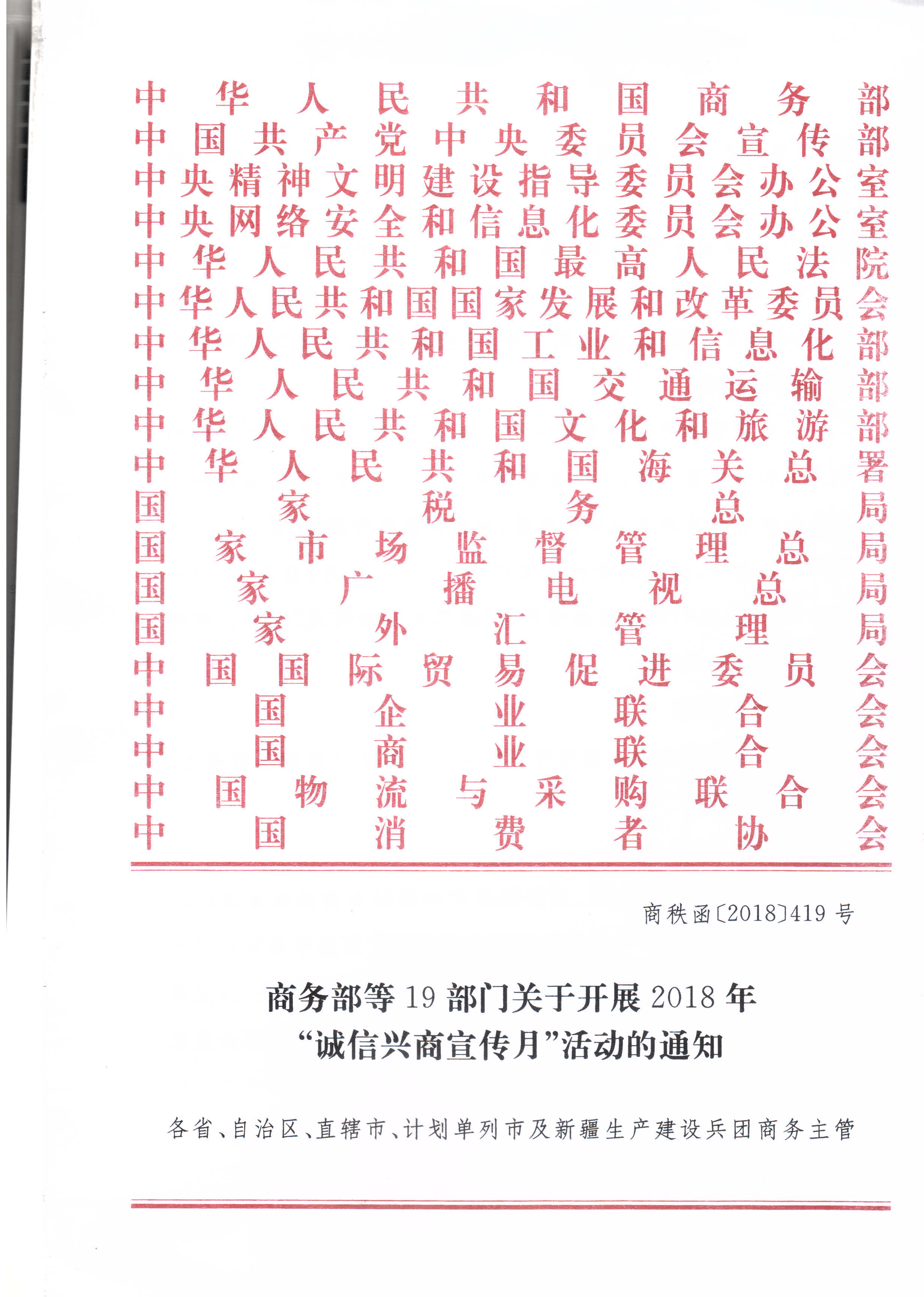 商務部等19部門關于開展2018年“誠信興商宣傳月”活動的通知
