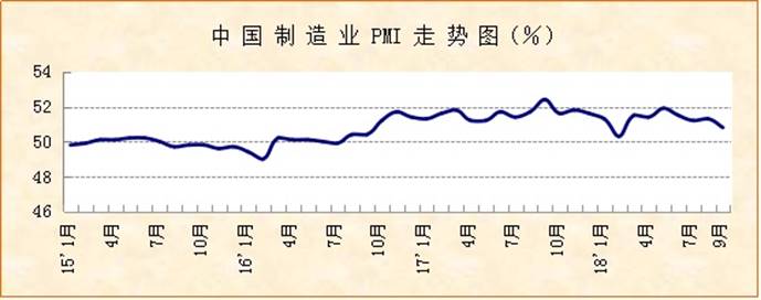 中國物流與采購聯合會、國家統計局服務業調查中心發布的2018年9月份中國制造業采購經理指數(PMI)為50.8%,環比小幅回落0.5個百分點,連續26個月位于50%以上,顯示經濟保持擴張狀態。細分指數顯示,國內供需處于相對較高水平,新動能加快成長,四季度經濟具備平穩發展基礎。但國外需求回落,部分外向度較高的企業受到一定影響就業減少,企業生產成本上升,應予以關注。