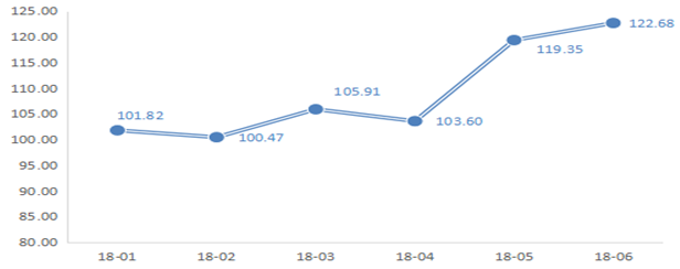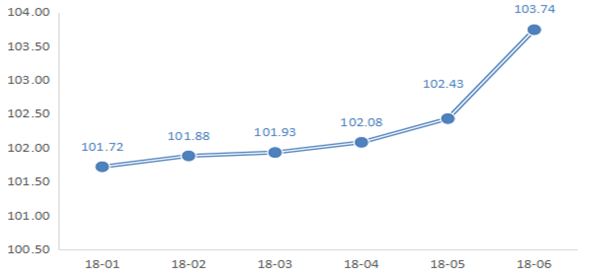圖1-4 2018年上半年塑料托盤價格指數(shù)走勢