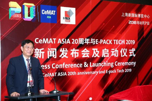 11月6日,2018亞洲國際物流技術與運輸系統展覽會(英文簡稱:CeMAT ASIA)在上海新國際博覽中心隆重開幕,中國物流與采購聯合會副會長蔡進出席展覽會。11月7日上午舉辦了CeMAT ASIA 20周年與E-PACK TECK 2019新聞發布會,會上公布了亞洲物流展20周年宣傳標識,并啟動了一系列配套推廣及慶典活動,蔡進副會長受邀出席并致辭。