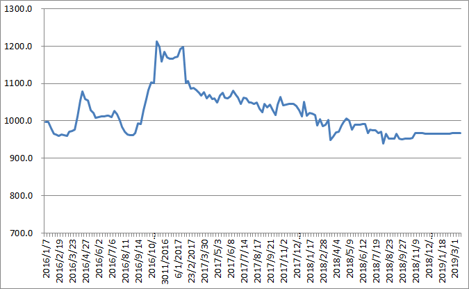 本周(2019年3月11日-3月15日),由中國物流與采購聯合會和林安物流集團聯合調查的中國公路物流運價指數967.39點,環比回落0.03%。
