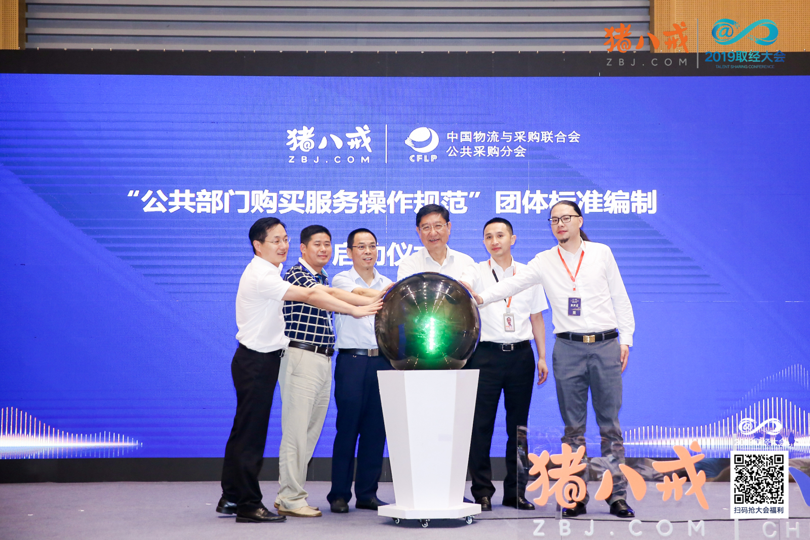 會議現場,中物聯公共采購分會會長蔡進、中物聯公共采購分會常務副會長胡大劍、中物聯公共采購分會秘書長彭新良、廣東財經大學公共采購研究中心主任黃冬如、重慶安道文化傳媒有限公司總裁安德森、重慶天蓬云采網絡有限公司副總經理劉志興一同登臺,共同啟動《公共部門購買服務操作規范》標準制定儀式。