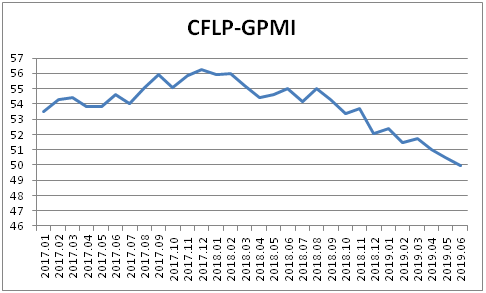 據中國物流與采購聯合會發布,2019年6月份全球制造業PMI為50%,較上月下降0.5個百分點,較去年同期下降5個百分點,連續3個月環比下降,降至榮枯線。分區域看,非洲制造業PMI較上月持平,亞洲、美洲和歐洲制造業PMI均有小幅下降。