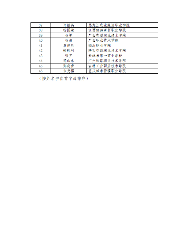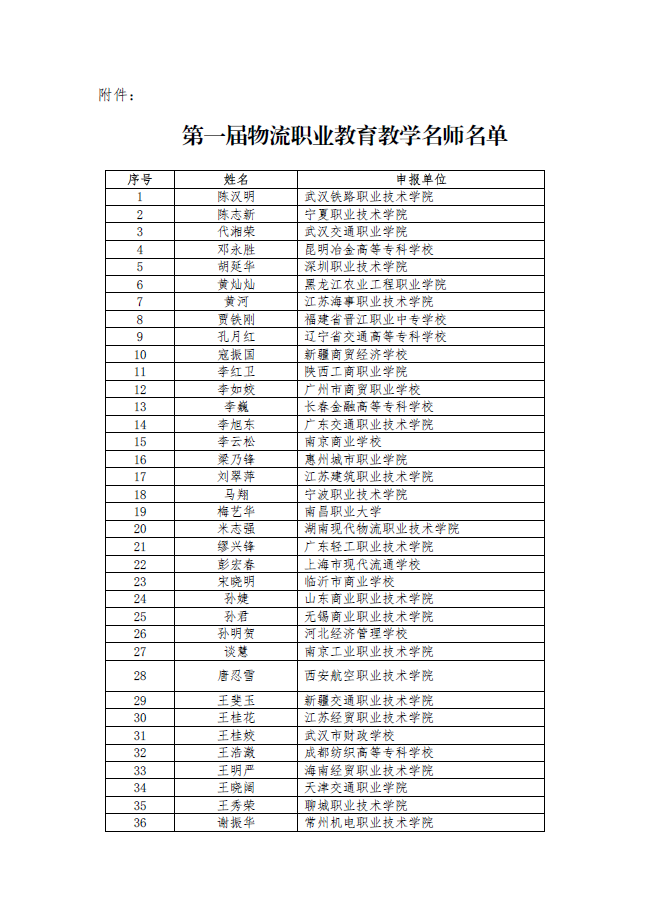 為貫徹習(xí)近平新時代中國特色社會主義思想和黨的十九大精神,落實黨的十九大提出的“加強(qiáng)師德師風(fēng)建設(shè),培養(yǎng)高素質(zhì)教師隊伍”和《中共中央國務(wù)院關(guān)于全面深化新時代教師隊伍建設(shè)改革的意見》精神,全國物流職業(yè)教育教學(xué)指導(dǎo)委員會于2019年6月-9月,開展了第一屆“物流職業(yè)教育教學(xué)名師”評選工作,共收到成果申報材料286份,其中有效申報材料278份,經(jīng)學(xué)校推薦、專家評審、審核公示,最終確定46名教師為第一屆物流職業(yè)教育教學(xué)名師,現(xiàn)將名單予以公布(名單見附件)。
