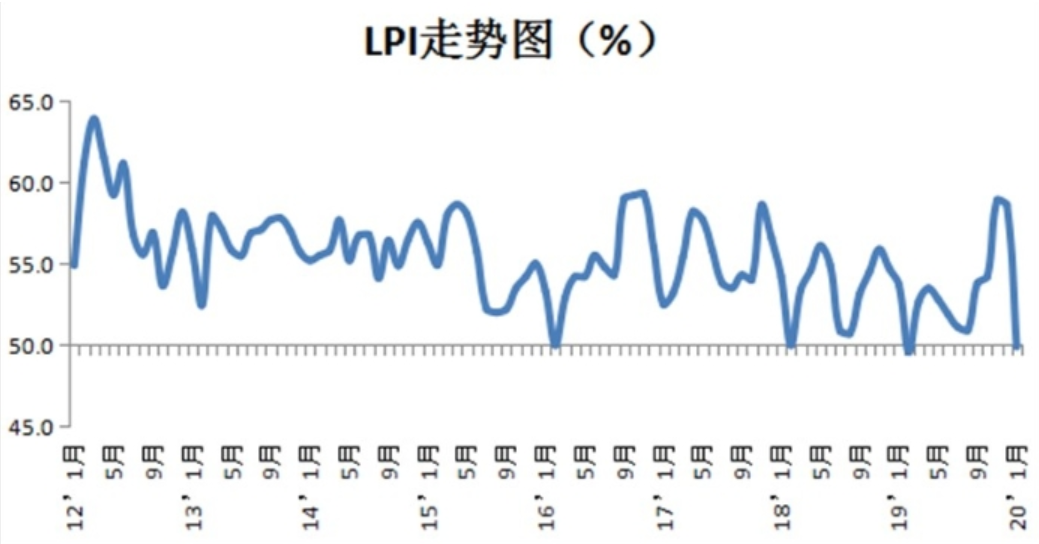 中國物流與采購聯合會發布的2020年1月份中國物流業景氣指數為49.9%,較上月回落8.7個百分點;中國倉儲指數為51.1%,較上月回落1.4個百分點。