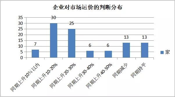 受行業(yè)復工復運不利影響,市場運價有上調(diào)趨勢。被調(diào)查企業(yè)中,有近7成以上的企業(yè)認為市場運價將上漲10%以上,其中,有近4成的企業(yè)認為會上漲20%以上,有1成以上的認為會上漲30%以上。