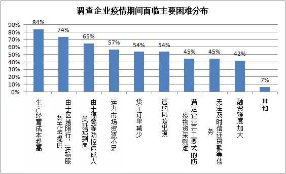 被調(diào)查企業(yè)中,84%的企業(yè)反映生產(chǎn)經(jīng)營成本提高,調(diào)研企業(yè)反映,受開工一再延遲影響,停工期間企業(yè)仍需支付停車費、場地租金、員工工資、社保等固定成本,還需支付貸款利息及相關(guān)稅費,資金壓力較大。企業(yè)開工后由于市場運力不足、運輸時效延遲等問題導致外請車輛成本上漲,各項防疫要求增加日常運營成本投入,更抬高了企業(yè)生產(chǎn)經(jīng)營成本。