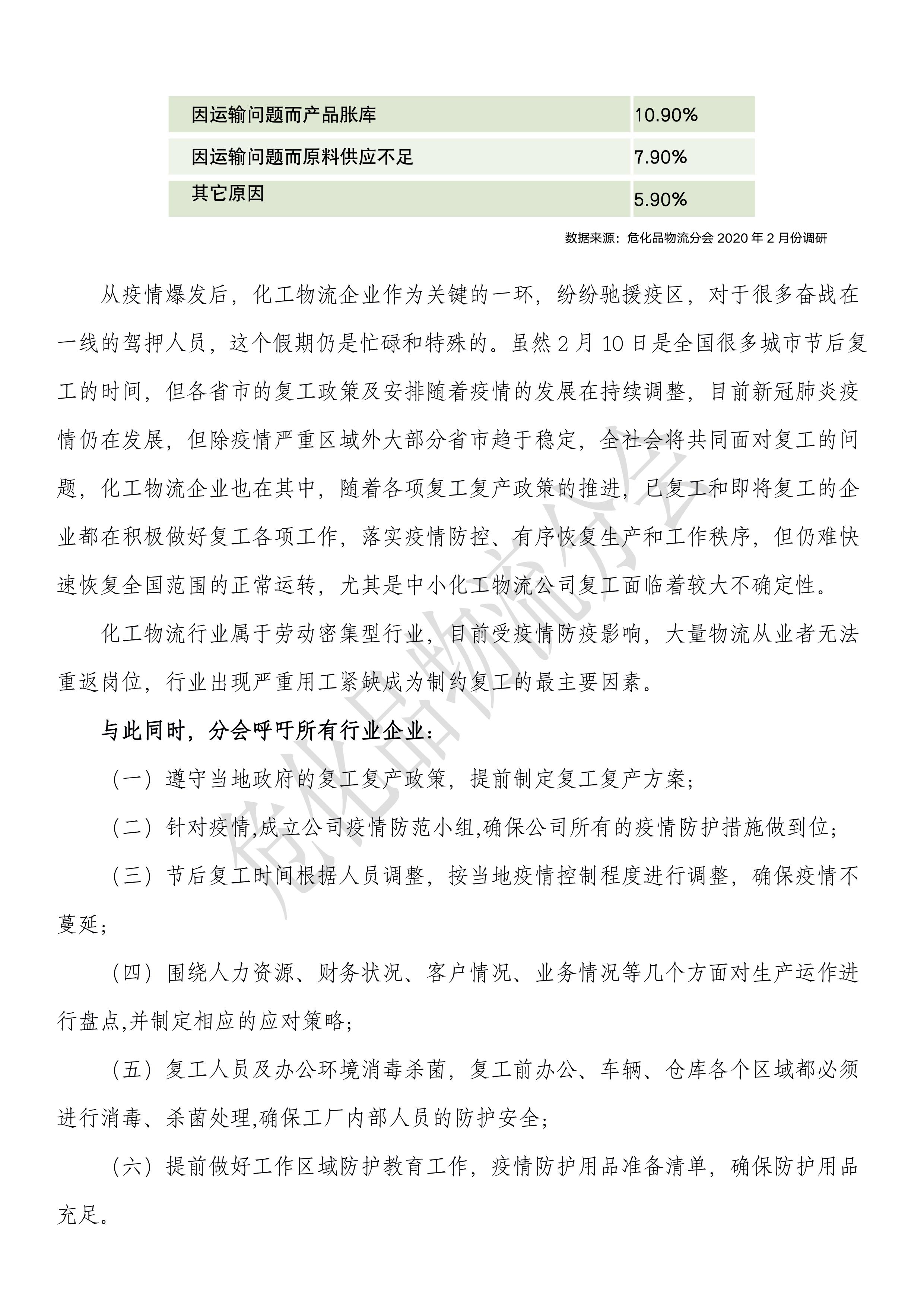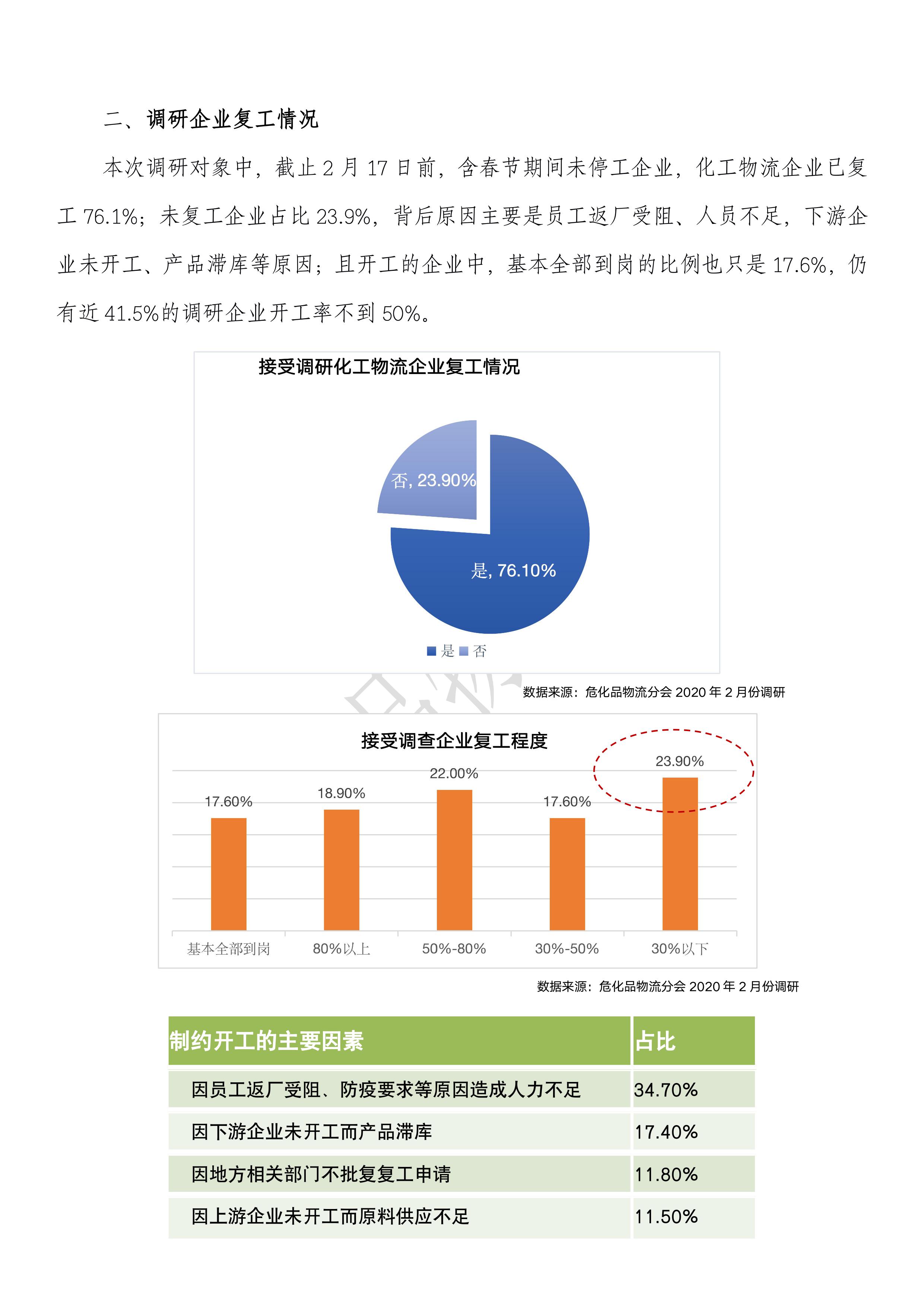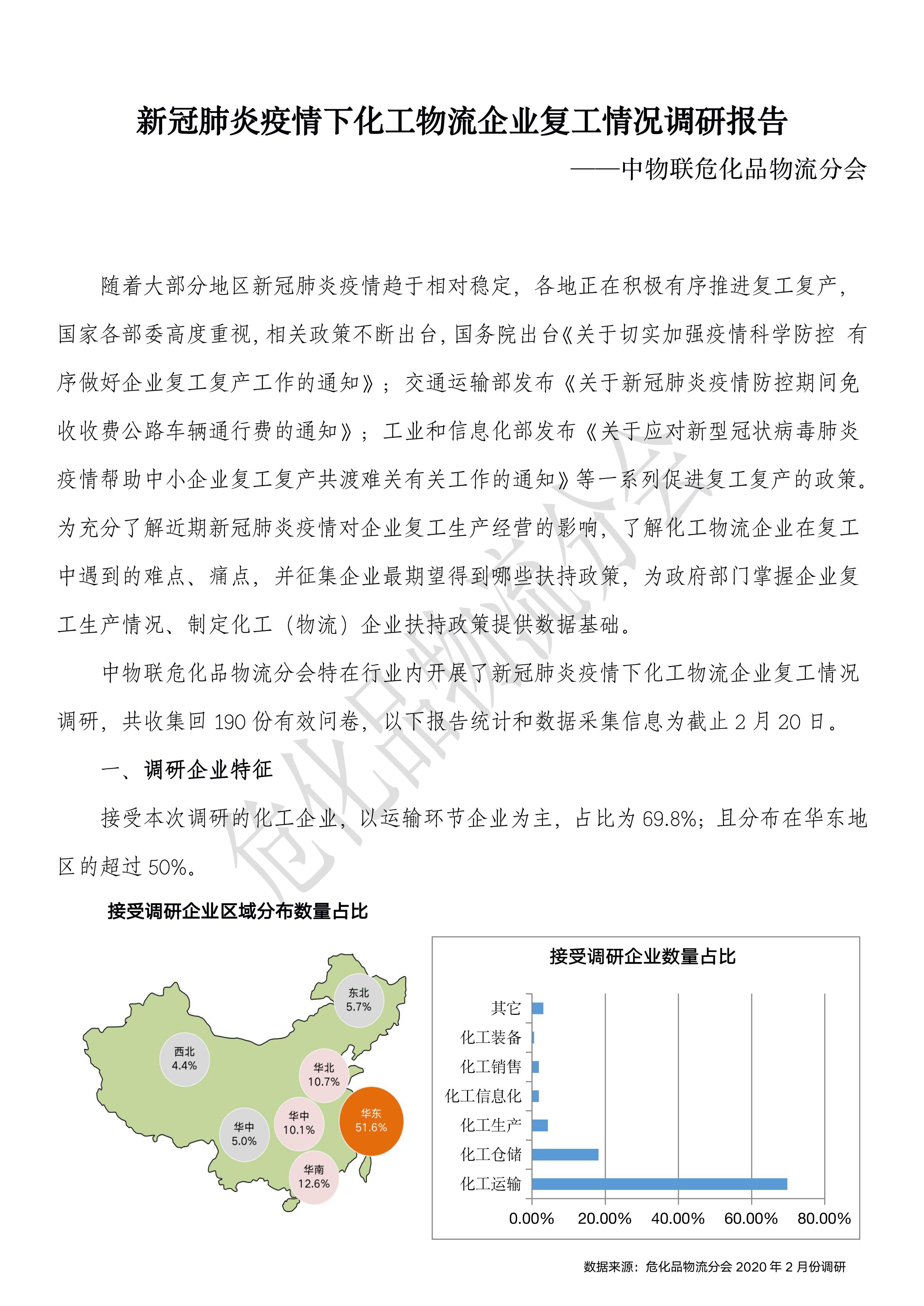 疫情下化工物流企業復工情況調研報告