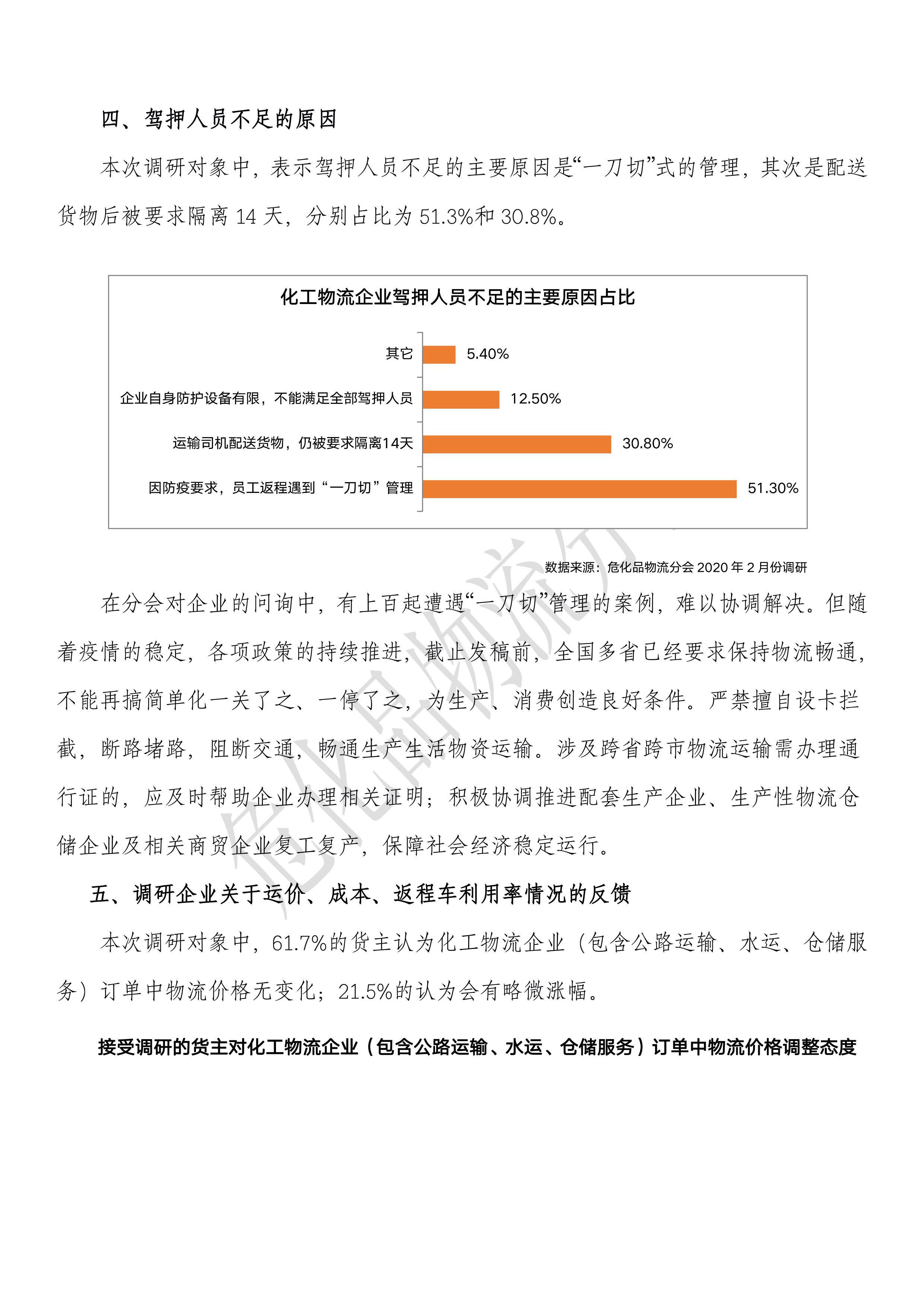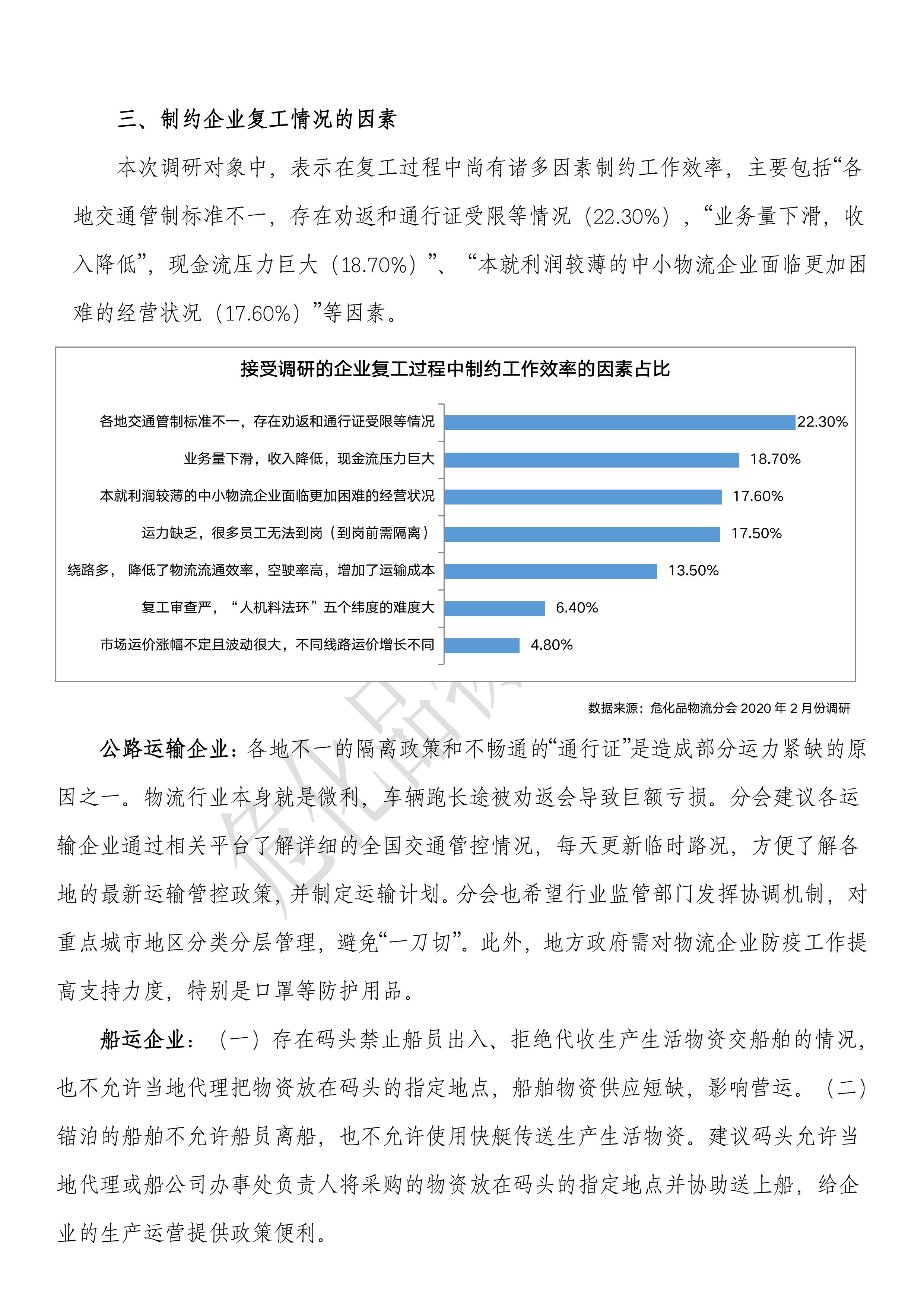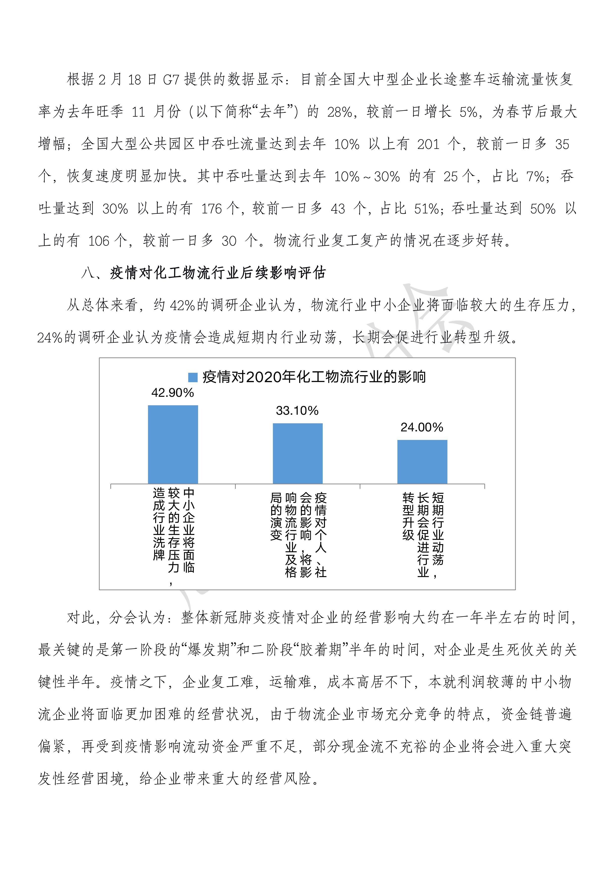 疫情下化工物流企業復工情況調研報告