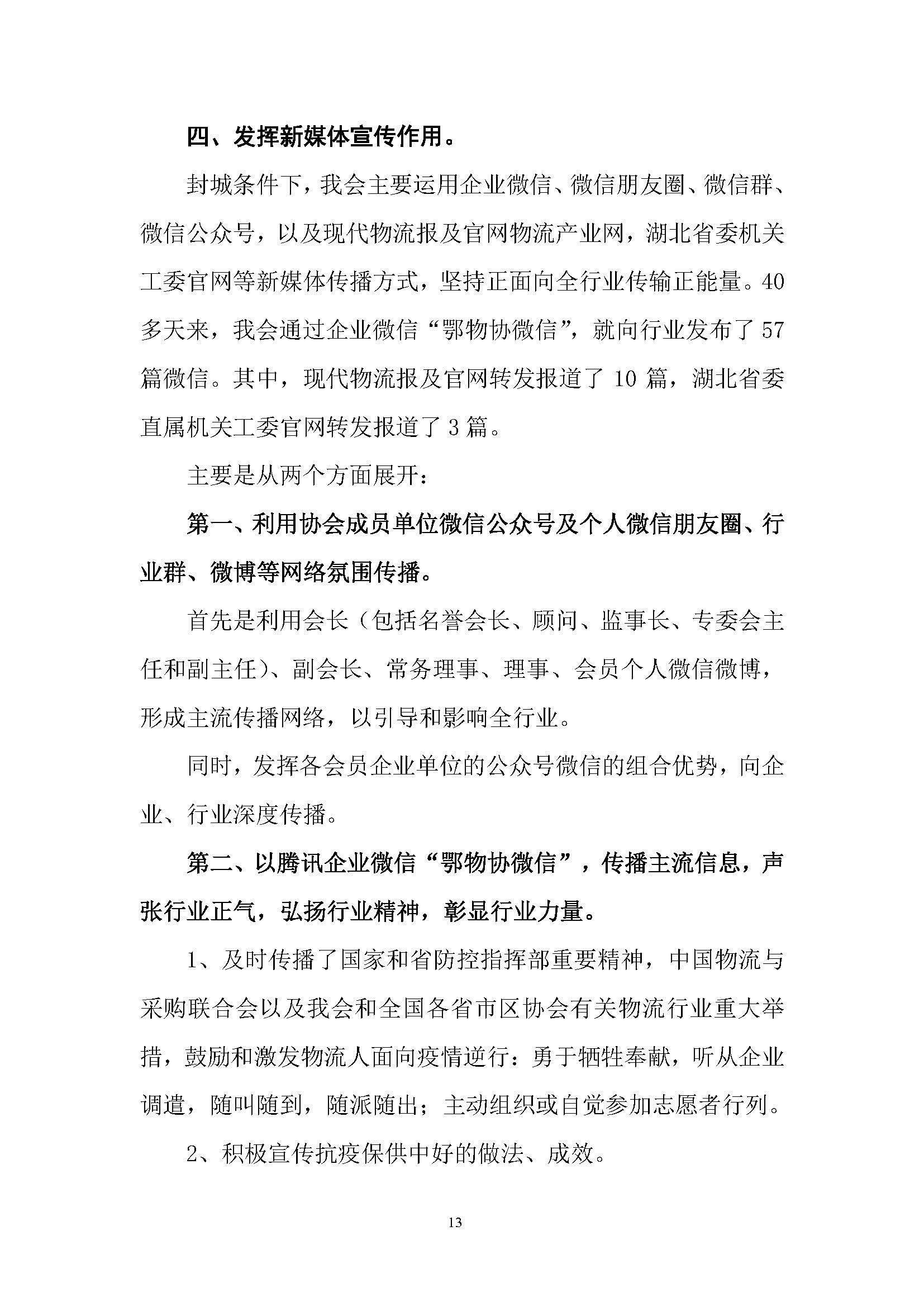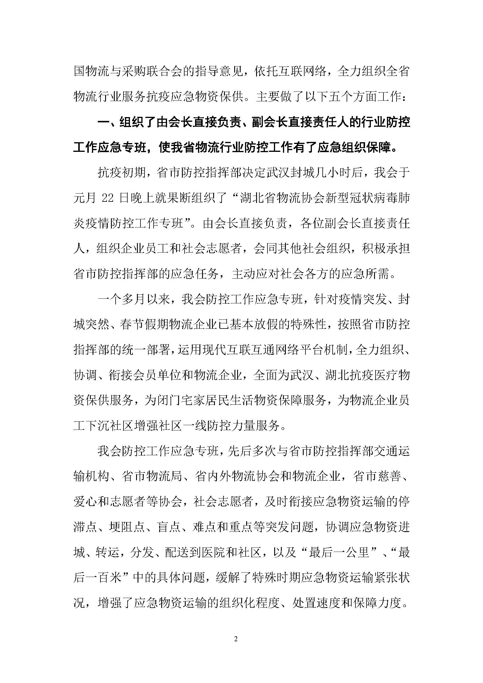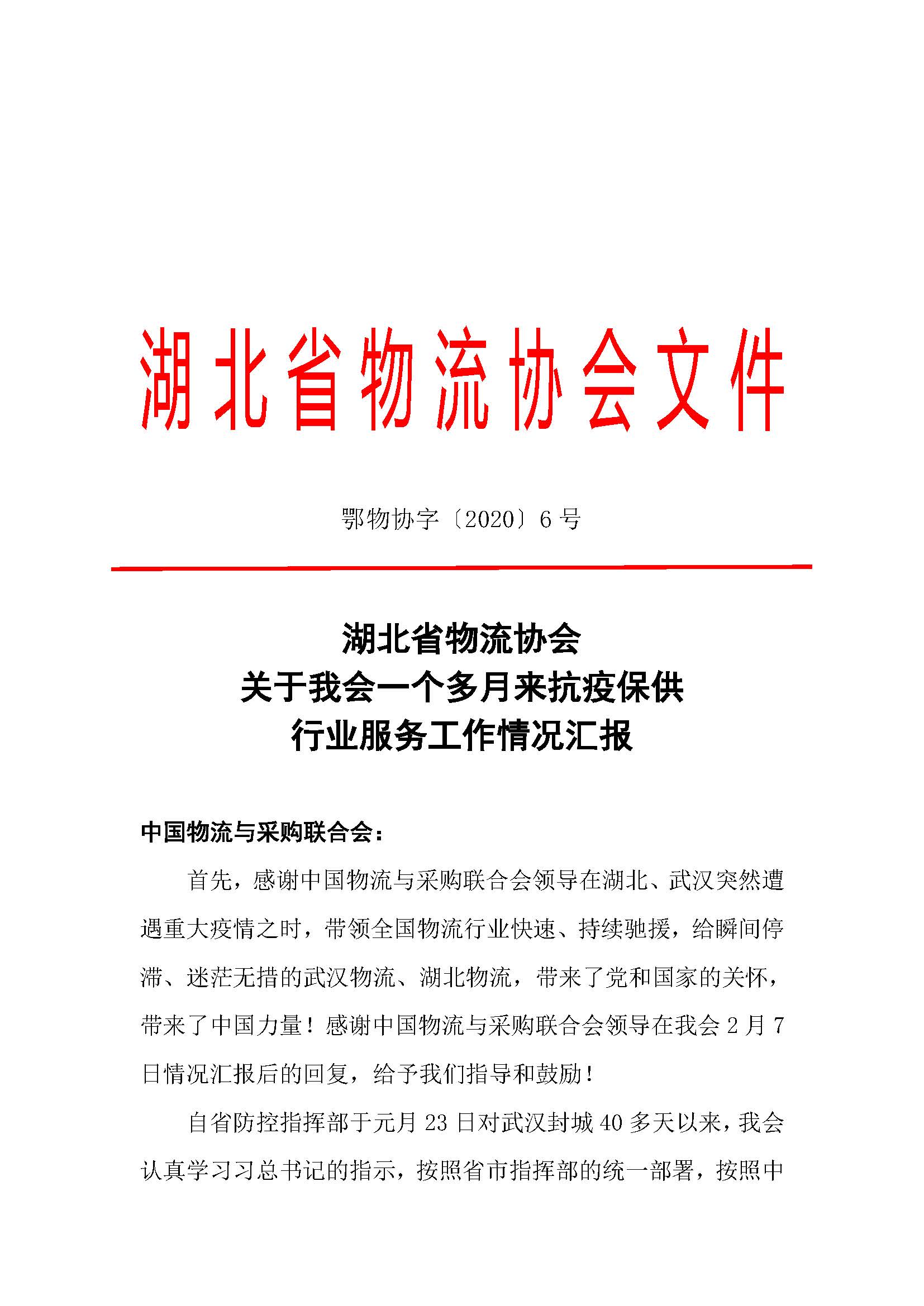 湖北省物流協(xié)會:關(guān)于我會一個多月來抗疫保供行業(yè)服務(wù)工作情況匯報