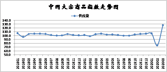 2020年3月份,大宗商品供應指數大幅反彈,至126.9%,顯示隨著國內新冠肺炎疫情得到有效控制,生產企業陸續復工生產,之前市場供應偏緊的局面得到明顯緩解。各主要商品中,本月監測的各商品的供應量均呈現大幅回升的格局,其中有色金屬供應量回升幅度超過40%,汽車供應量回升接近四成。
