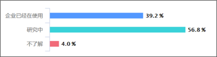 隨著技術的更新和新材料的不斷更迭,硬件的成本逐步降低,物聯網的應用已經深入到眾多行業。海量數據的沉淀,只有通過數據的不斷挖掘才能讓數據產生價值,因此大數據和物聯網的應用受到眾多企業關注并不是偶然。同時,云計算、人工智能、區塊鏈的加入,使得企業可以在云上構建更多地應用,盡可能使企業的數據價值得到釋放。應用技術整合,企業可以獲得更多地發展空間。調查顯示,已經有39.2%的核心企業應用大數據、人工智能等技術來輔助企業做資源整合和決策優化等(如圖4)。