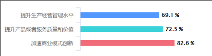 提升管理水平是企業數字化轉型直接體現,數字化帶來了企業整體的優化整合,管理水平的提升導致工作效率的提升,數字化技術能協同企業高效運營實現降本增效。同時,研究發現,大多數企業認為企業數字化轉型會加速創新與企業需求相適應的商業模式,實現企業可持續發展。
