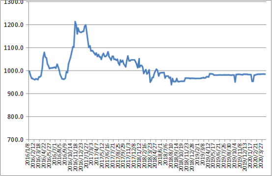 圖1 2016-2020年各周中國公路物流運價指數
