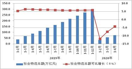 隨著復工復產進度加快,物流需求降幅連續收窄,1-4月份全國社會物流總額75.3萬億元,按可比價格計算,同比下降4.2%,降幅比1-3月份收窄3.1百分點。