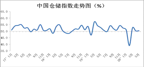 中國物流與采購聯合會發布的2020年5月份中國物流業景氣指數為54.8%,較上月回升1.2個百分點;中國倉儲指數為50.4%,較上月回升0.1個百分點。