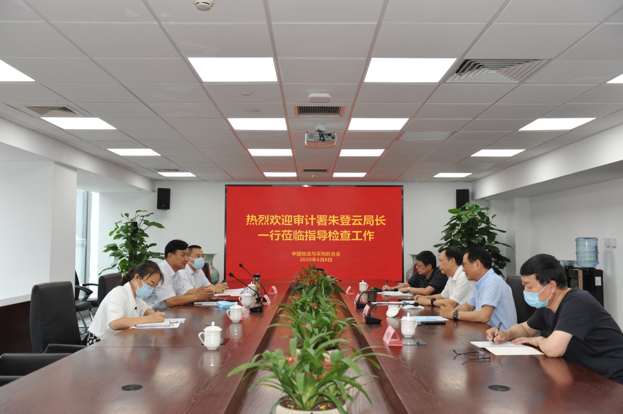 6月8日,國家審計署企業審計一局局長朱登云一行蒞臨中國物流與采購聯合會(簡稱中物聯)指導檢查工作,中物聯黨委書記、會長何黎明,副會長兼秘書長崔忠付出席會議,雙方就有關工作交換了意見。