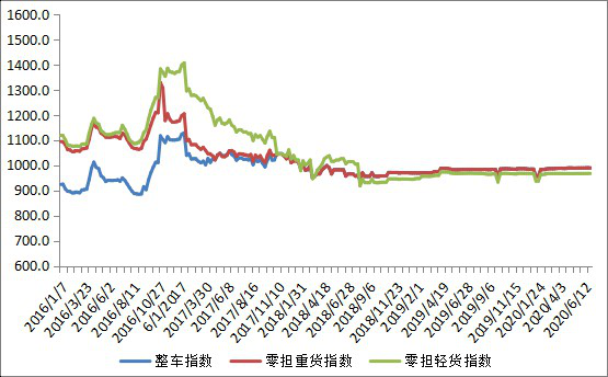 本周(2020年6月29日-7月3日),由中國物流與采購聯(lián)合會和林安物流集團(tuán)聯(lián)合調(diào)查的中國公路物流運價指數(shù)985.29點,比上周回落0.07%。