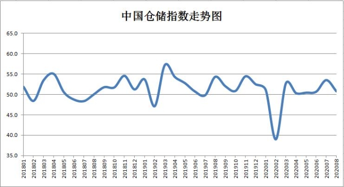 中國物流與采購聯合會和中儲發展股份有限公司聯合調查的中國倉儲指數,2020年8月份為50.8%,較上月下降2.7個百分點。指數小幅回落,反映出行業發展速度有所減緩,短期壓力加大。但指數連續六個月保持在榮枯線以上,表明行業整體運行仍將保持平穩向好趨勢。
