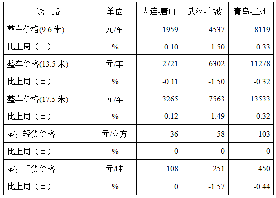 表1 本周部分線路平均價格及環(huán)比情況對比