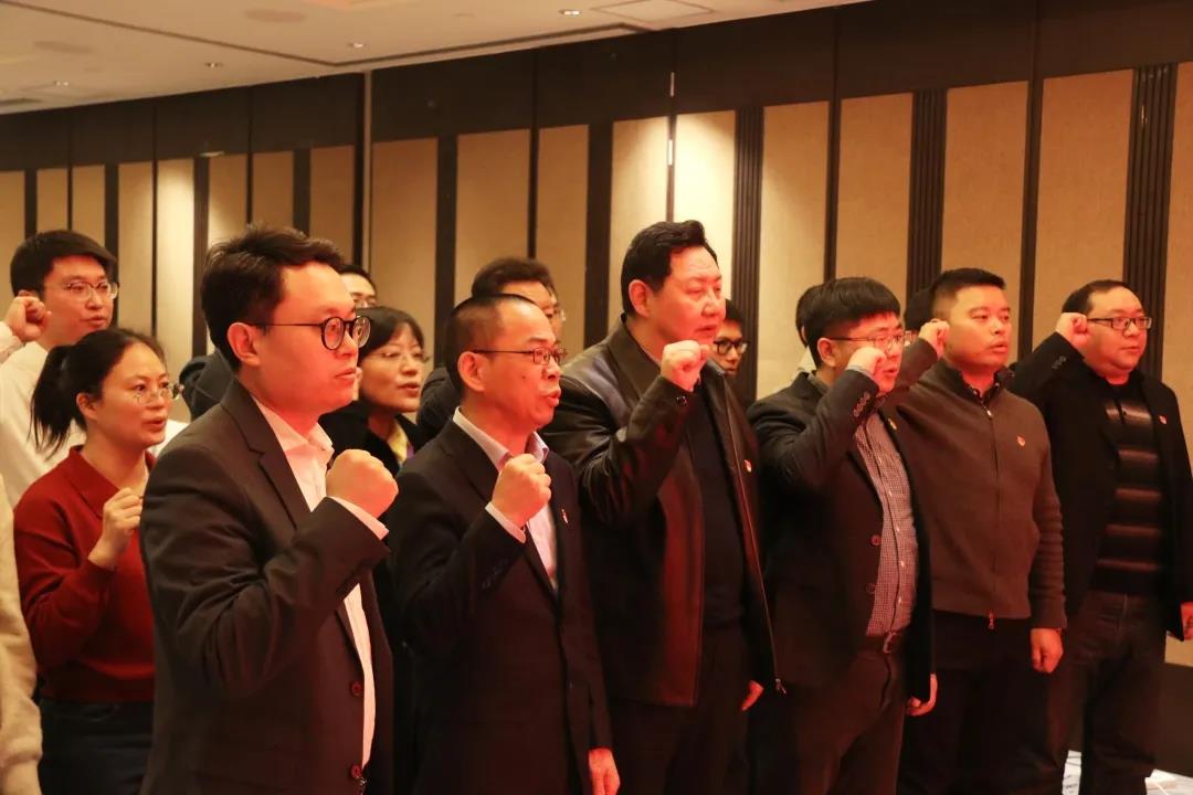 上海華能電商公司黨委委員、副總經(jīng)理黃云飛帶領(lǐng)雙方全體黨員重溫入黨誓詞。