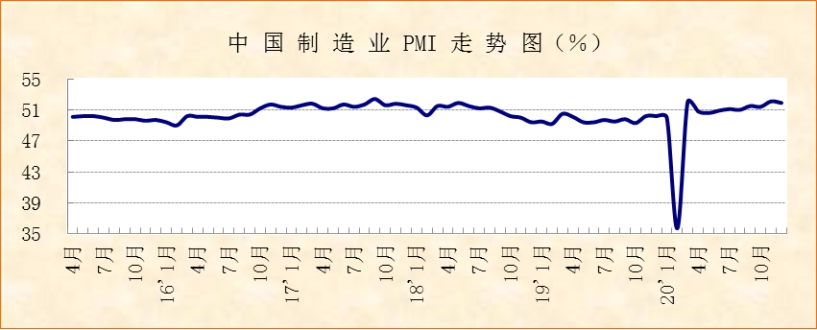 從全年制造業PMI走勢來看,年初的新冠肺炎疫情給經濟帶來巨大沖擊,隨著黨中央國務院統籌推進疫情防控和經濟社會發展效果持續顯現,從二季度開始,經濟進入穩定復蘇階段,目前已基本回歸常態化運行。綜合來看,2020年經濟復蘇勢頭持續向好發展。