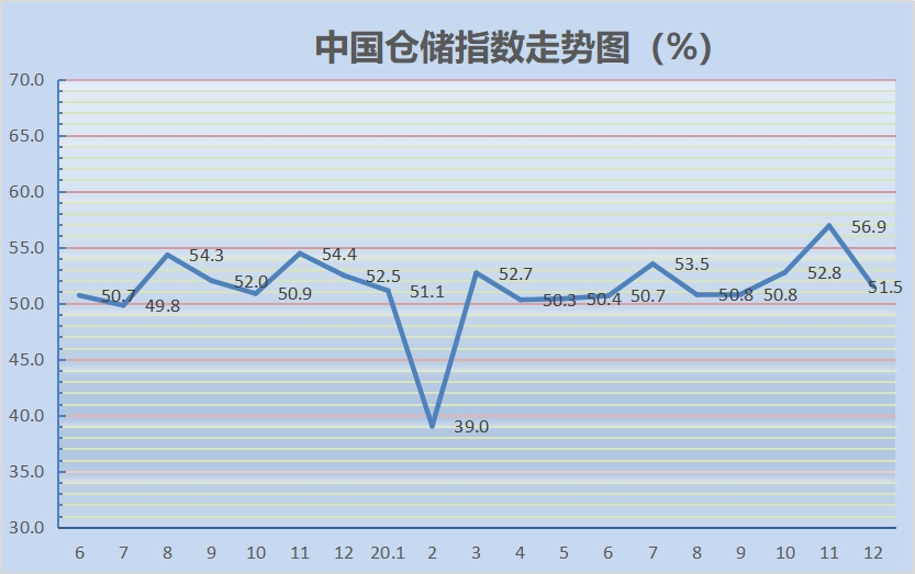 中國(guó)物流與采購(gòu)聯(lián)合會(huì)與中儲(chǔ)發(fā)展股份有限公司聯(lián)合調(diào)查的中國(guó)倉(cāng)儲(chǔ)指數(shù),2020年12月份為51.5%,較上月下降5.4個(gè)百分點(diǎn),連續(xù)十個(gè)月保持在榮枯線以上。各分項(xiàng)指數(shù)中,收費(fèi)價(jià)格指數(shù)、業(yè)務(wù)活動(dòng)預(yù)期指數(shù)較上月有所上升,其余指數(shù)均有不同程度的下降。
