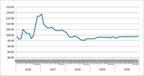 圖1 2016年以來各月中國公路物流運價指數