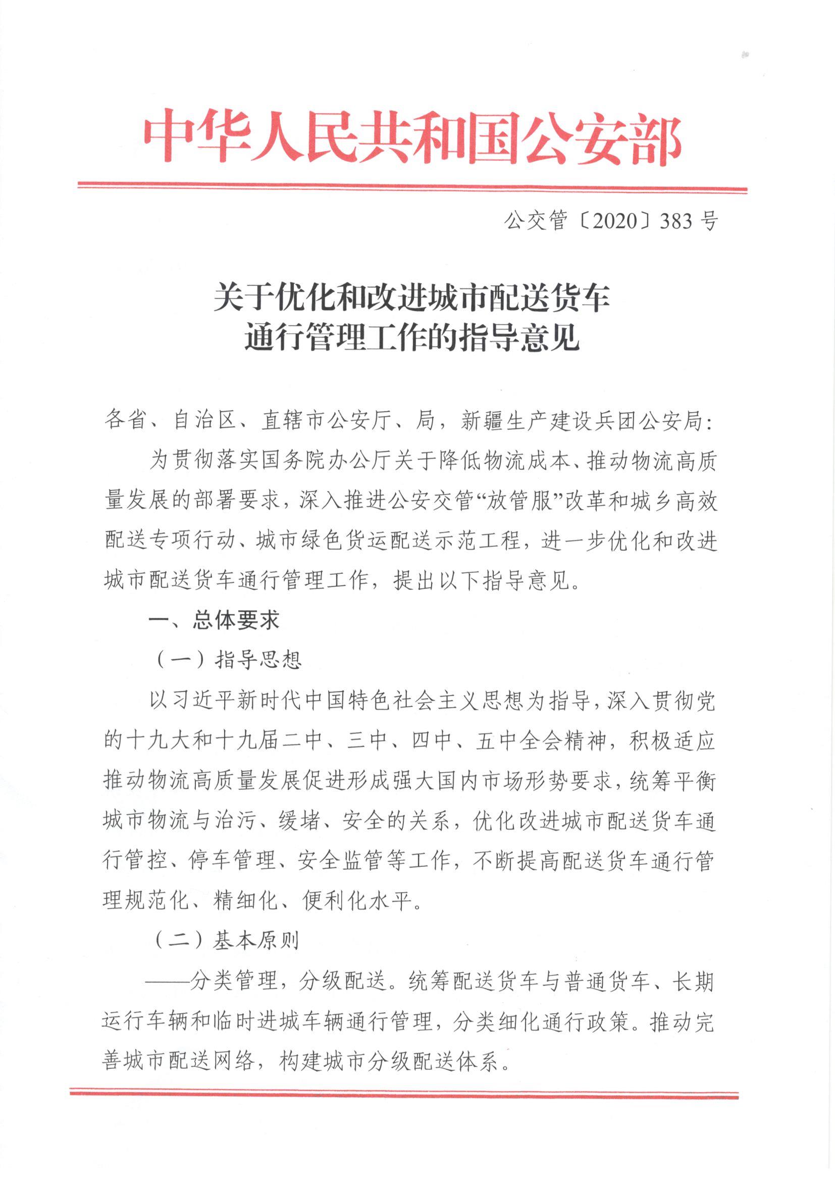 關于優化和改進城市配送貨車通行管理工作的指導意見.pdf
