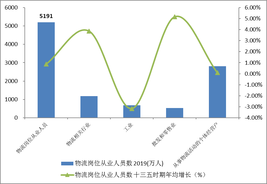 從結構來看,一是物流專業人才保持較快增長,物流人員專業化程度提升。我國物流相關行業從業人員數超過1200萬人,比2016年增長16%,年均增長3.9%。二是運輸物流仍是吸納就業的主體,其中道路運輸較快增長,鐵路和水路有所放緩;三是電商快遞、多式聯運等新型行業成為新增就業的主要動力,“十三五”時快遞物流行業新增吸納就業超過100萬人,年均增長10%,多式聯運及運輸代理行業新增吸納就業超過15萬人,五年年均增長8%,增速均快于行業平均水平。