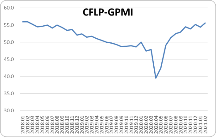 據中國物流與采購聯合會發布,2021年2月份全球制造業PMI為55.6%,較上月上升1.2個百分點,連續8個月保持在50%以上。分區域看,歐洲和美洲制造業增速較上月有所加快,PMI均有不同程度上升,亞洲和非洲制造業增速平穩,PMI較上月波動不大。綜合指數變化,全球制造業增速較上月加快,全球經濟復蘇趨勢有所增強。