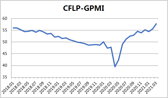 2021年3月份,歐洲制造業PMI較上月上升3.4個百分點至59.5%,達到近兩年最高水平,顯示歐洲制造業增速明顯加快,歐洲經濟復蘇態勢進一步增強。歐洲制成品需求的快速增長帶動歐洲制造業的快速回升,為后續歐洲經濟全面復蘇打下了基礎,同時歐元區財長表示將維持大規模的財政支出措施,歐洲央行也表示將加快購債步伐,以幫助經濟加速復蘇。但值得注意的是,當前歐洲疫苗接種工作并不順利,某些疫苗由于副作用被暫停使用,這也導致部分地區防疫措施趨緊,對服務業影響較大,后續疫苗問題得到解決后,歐洲經濟有望進一步回升。