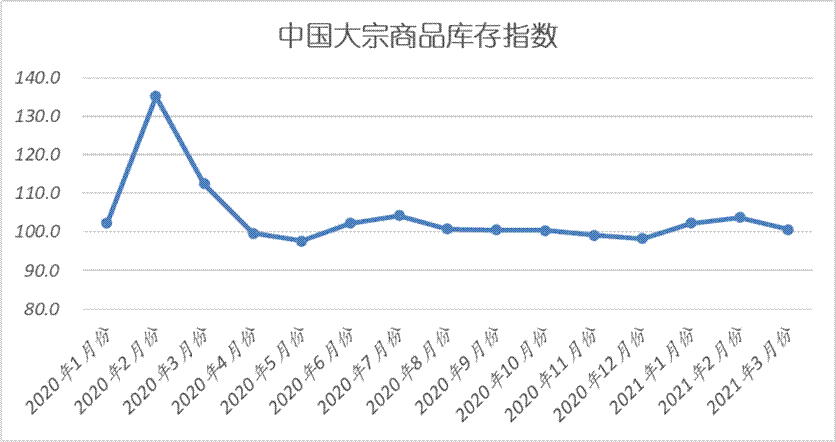由中國物流與采購聯合會調查、發布的2021年3月份中國大宗商品指數(CBMI)為102.1%,較上月上升0.4個百分點,為2020年12月份以來的最高點。各分項指數中,銷售指數止跌回升,供應指數和庫存指數均自高點回落,特別值得關注的是各商品銷售指數全面回升。本月CBMI顯示,指數持續上升,顯示近期國內大宗商品市場運行情況較上月有所好轉,市場供需狀況明顯改善,前期受天氣、假期等因素影響造成的短期波動基本平復。縱觀后市,我們認為隨著消費旺季的來臨,國內大宗商品市場基本度過了去年冬季以來的低迷期,后期在經濟回暖、基建發力等利好推動下,國內大宗商品市場將迎來穩中向好的格局。