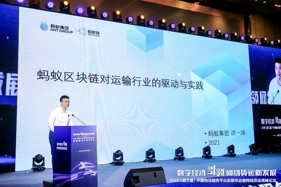 螞蟻區(qū)塊鏈國內(nèi)物流及供應鏈行業(yè)總監(jiān)洪一瑋發(fā)表題為《螞蟻區(qū)塊鏈對運輸行業(yè)的驅(qū)動與實踐》的主題演講。他指出區(qū)塊鏈最大的核心價值是“信任”。在物流場景下,區(qū)塊鏈技術(shù)將助力企業(yè)實現(xiàn)企業(yè)內(nèi)控、金融增信和保險集成,解決企業(yè)融資難的問題。
