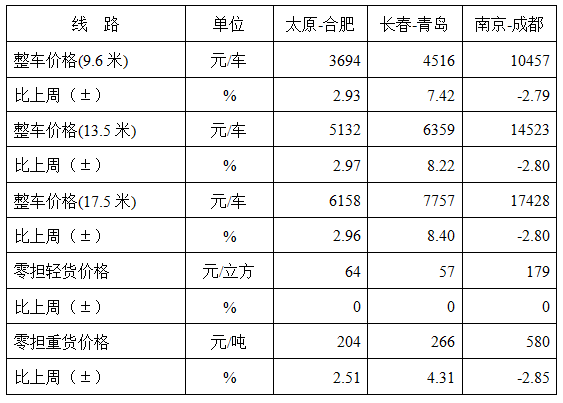 表1 本周部分線路平均價格及環(huán)比情況對比