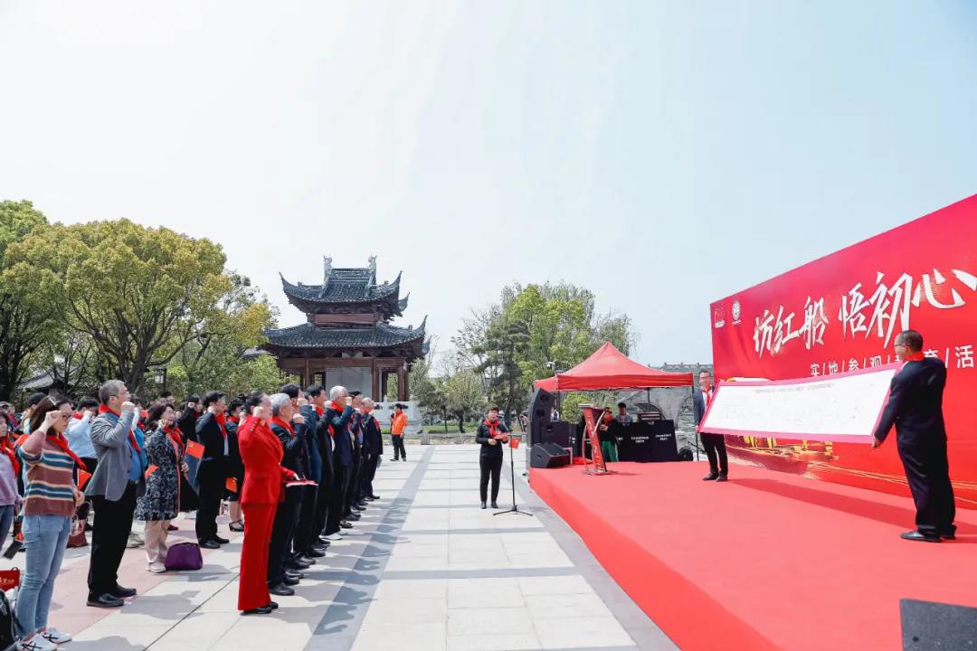 當天活動,還分組、分批、分場組織開展瞻仰紅船、水上黨課、走網紅廊橋等“追尋紅色精神,重溫紅船記憶”黨日活動。