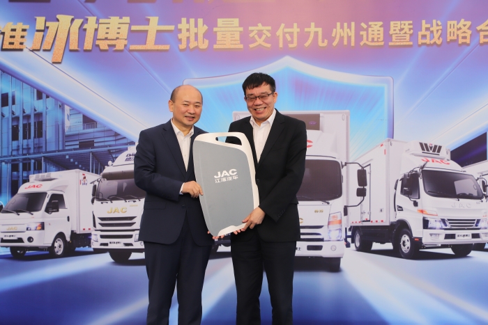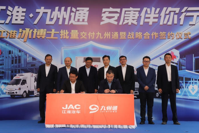 2021年4月21日,由江淮汽車和九州通集團主辦以“江淮·九州通 安康伴你行”為主題的江淮冰博士批量交付九州通暨戰略合作簽約儀式在九州通北京物流園舉行。中國物流與采購聯合會副會長兼秘書長崔忠付出席并致辭。中國疾控中心傳染病預防控制所黨委書記、研究員盧金星,江汽集團控股公司黨委書記、董事長項興初參加活動。活動現場江淮汽車向九州通醫藥集團一次性批量交付了56臺冰博士冷藏車,并且簽訂了戰略合作協議。