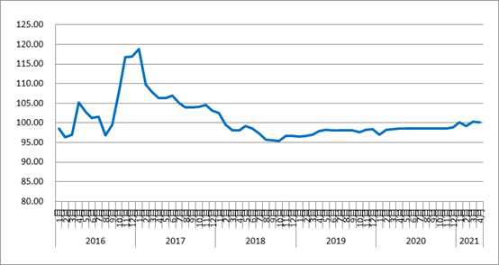圖1 2016年以來各月中國公路物流運(yùn)價指數(shù)